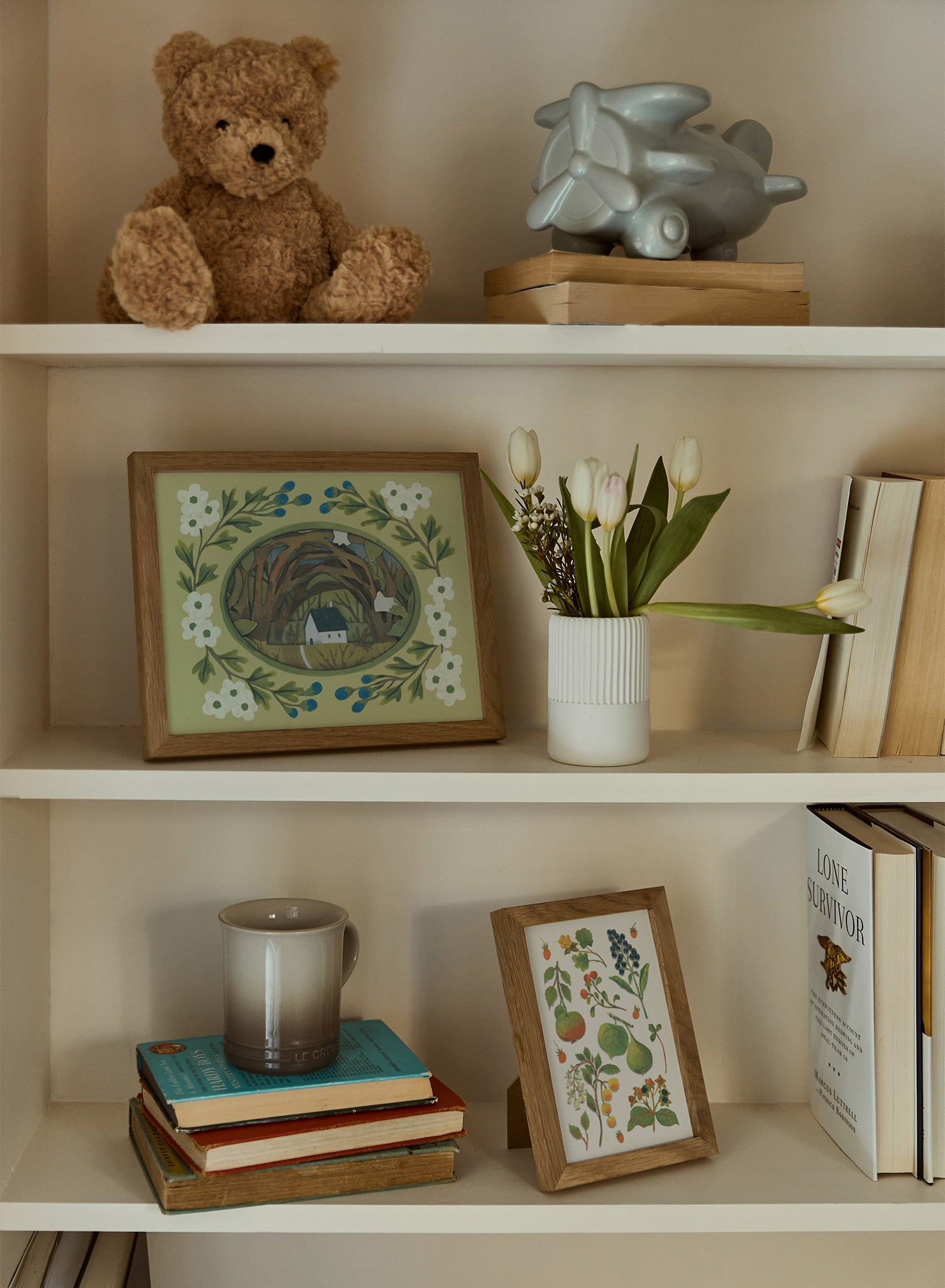 An exclusive collaboration between Us and Shelley Aldrich, this capsule translates the Southern California artist’s three-dimensional cut-paper dioramas into richly textured, story-led art prints. Layered pages, pencilled lines, and visible brushstrokes preserve the handmade depth and cosy, bookish mood she’s known for. Thoughtfully scaled for home display, these prints honour Aldrich’s narrative craft with a refined edit of her book-inspired worlds.