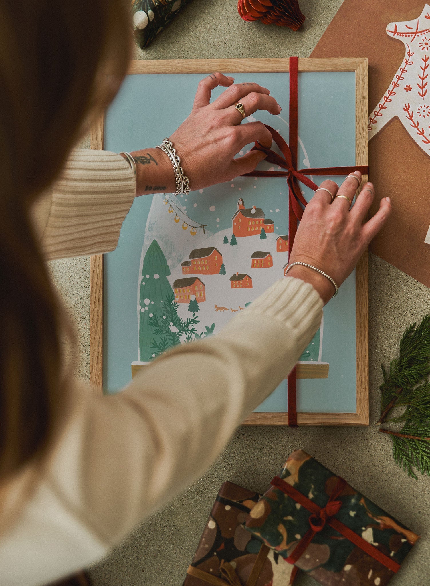 Perfect for a living room or bedroom, this print brings a touch of winter magic to any space. Pair it with soft textiles and natural wood accents for a cozy, inviting feel. It complements rustic or Scandinavian decor styles, making it a versatile addition to your seasonal collection.